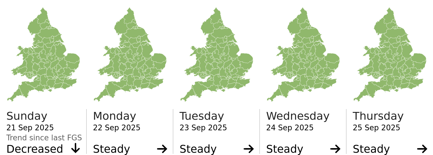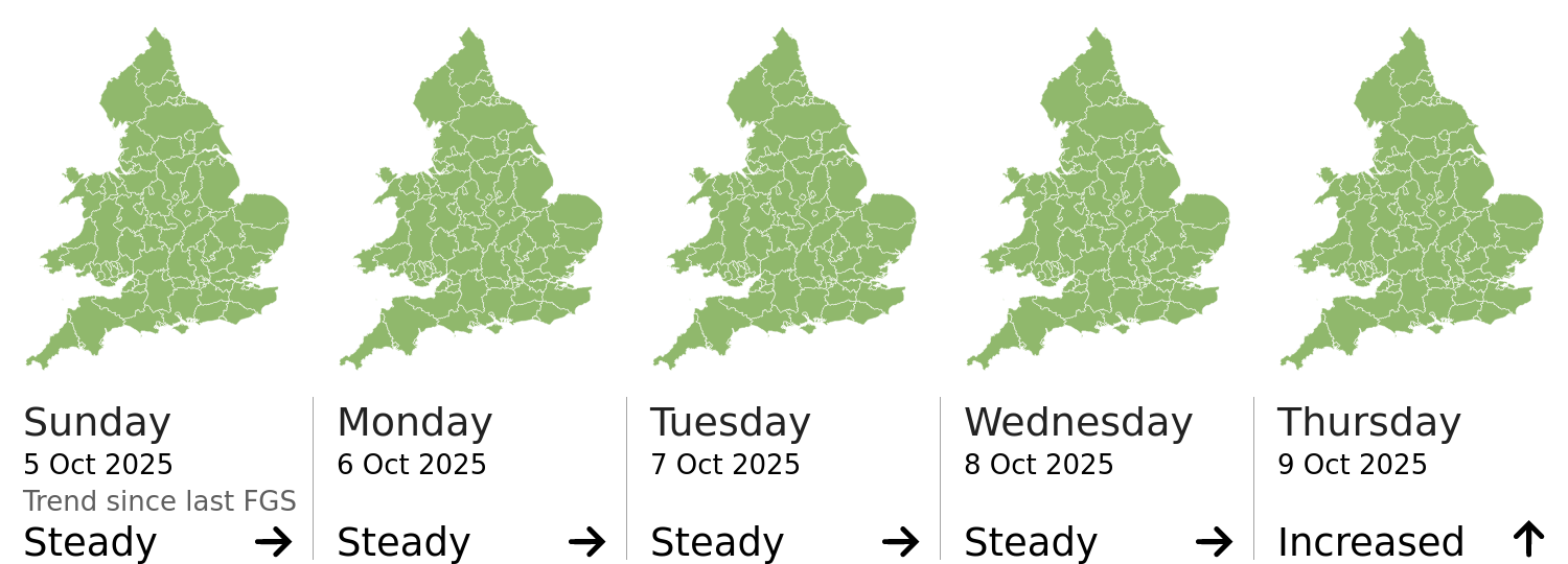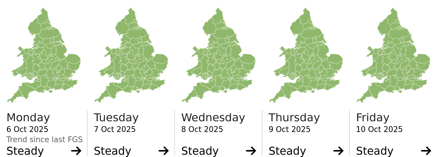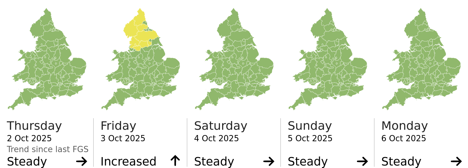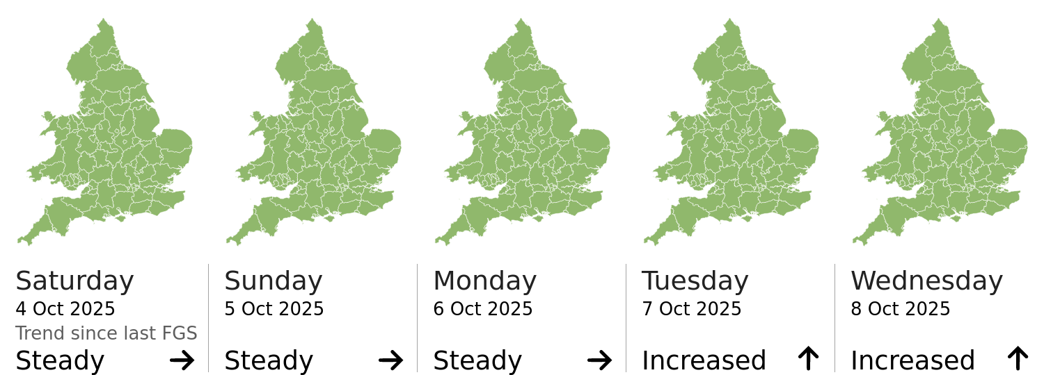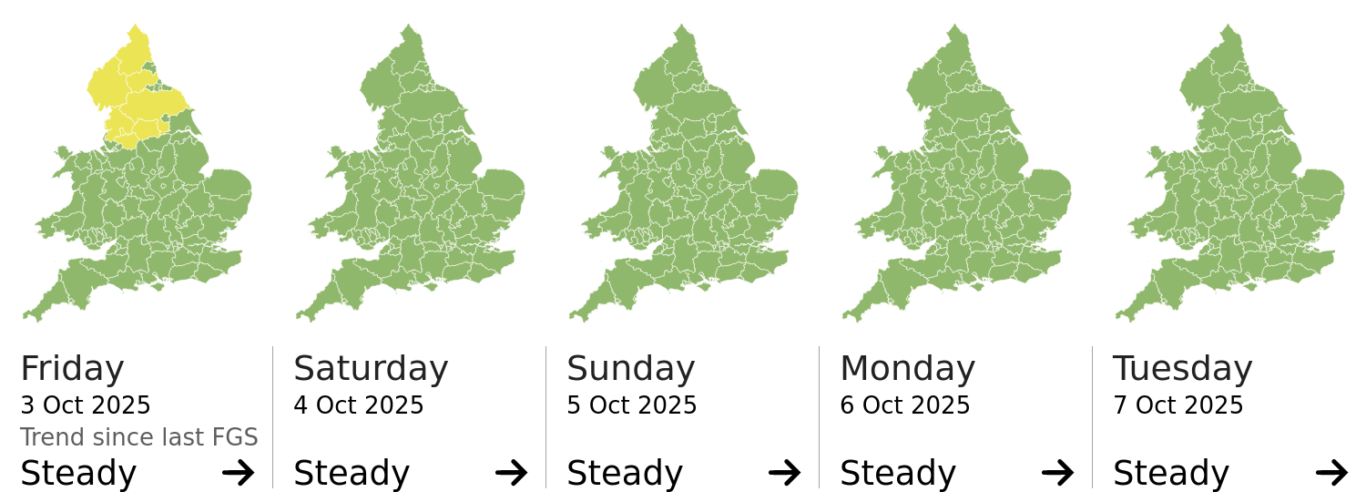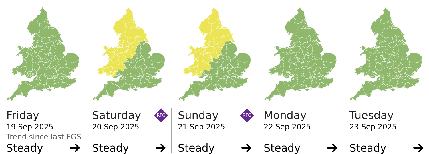 Headline | The overall flood risk for England and Wales is VERY LOW for the next five days. | |||